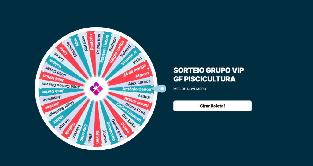 - Sorteio válido apenas para membros do Grupo VIP GF Piscicultura;